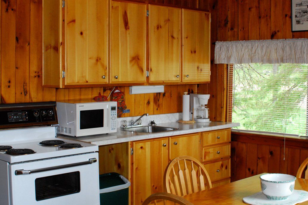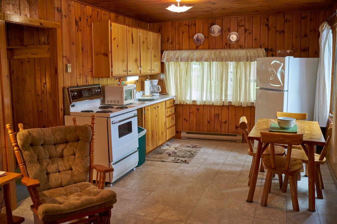This two-bedroom cottage with traditional knotty pine walls will sleep up to 4 people.